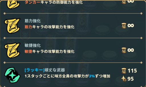-5% | タンカー強化Ⅱ | タンカーキャラの防御能力を強化 |
